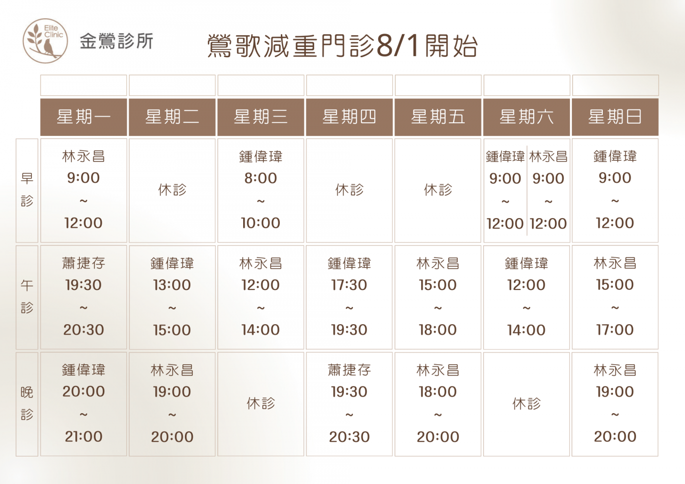 中午12:00-14:00、下午18:00-18:30 休診