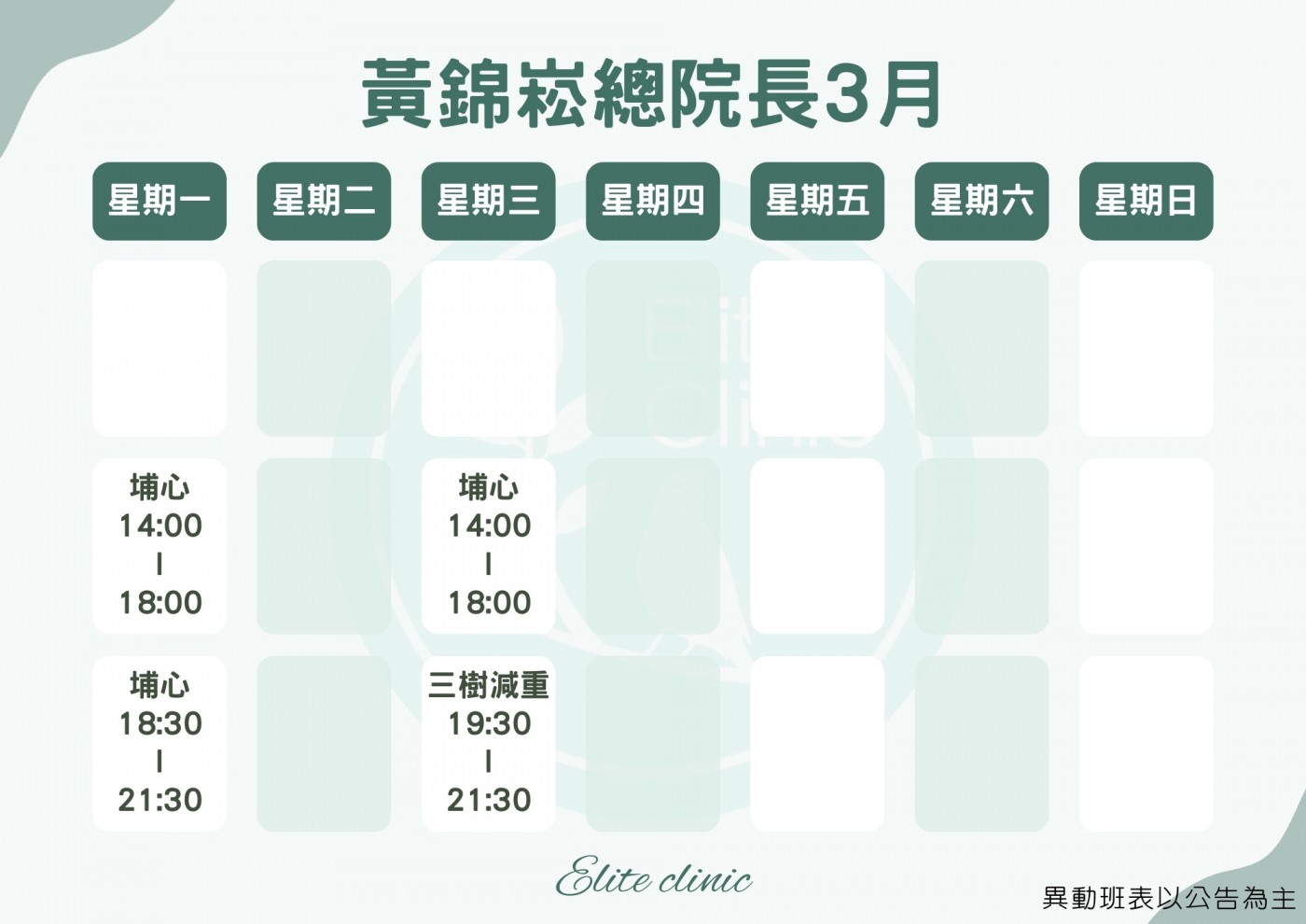 門診表