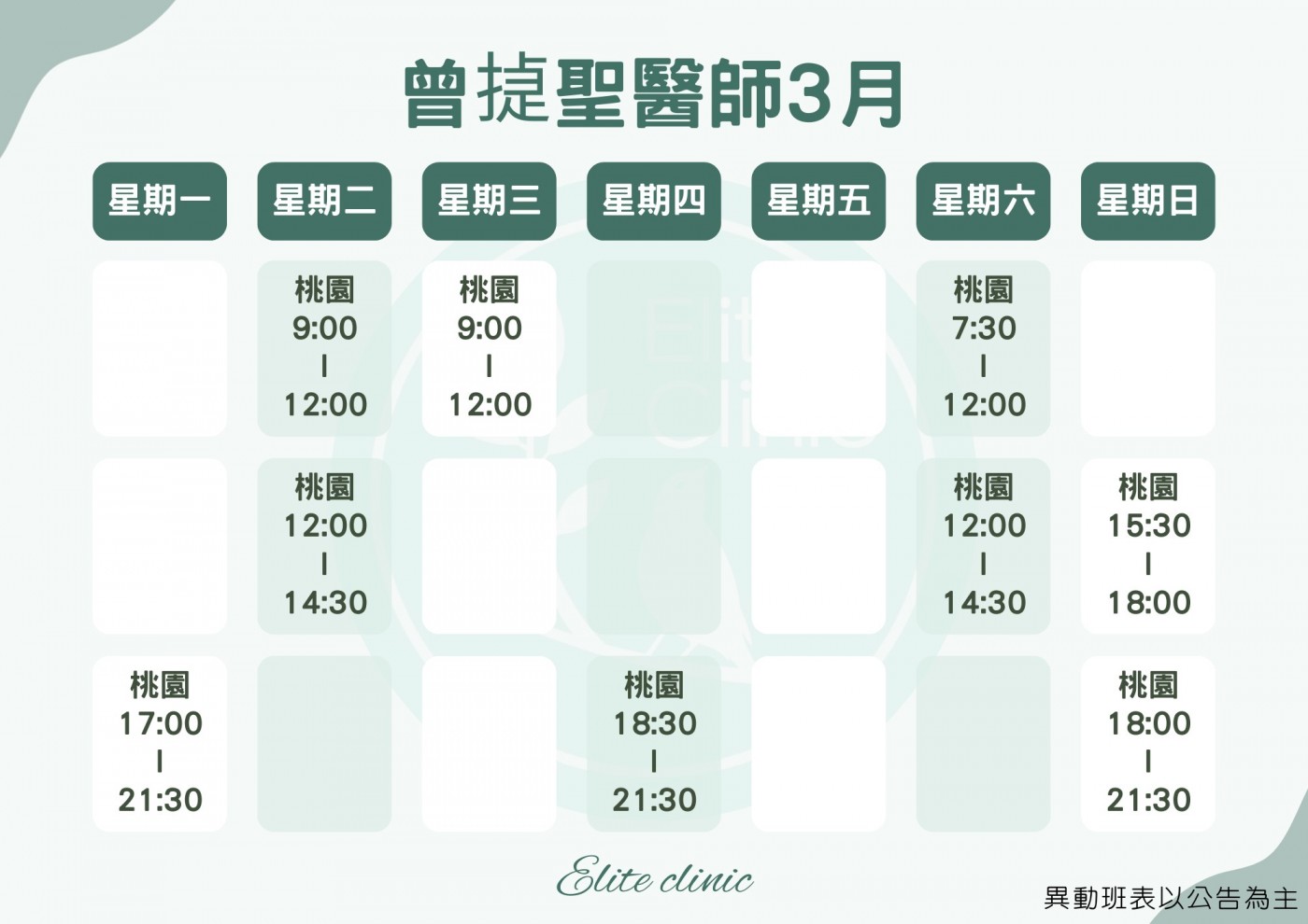 門診表