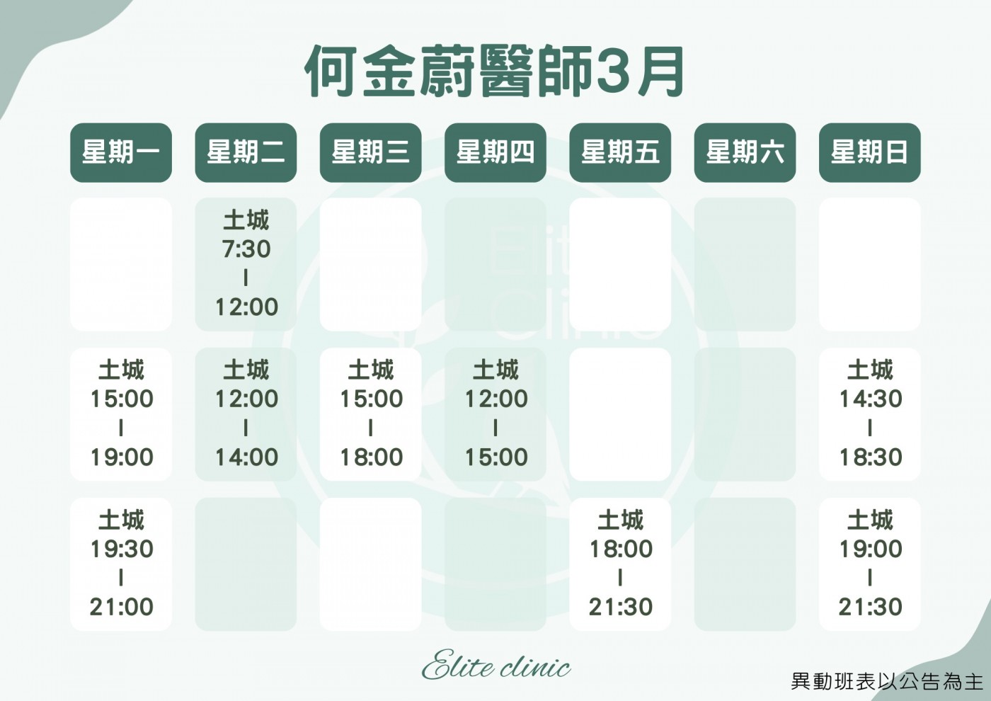 門診表
