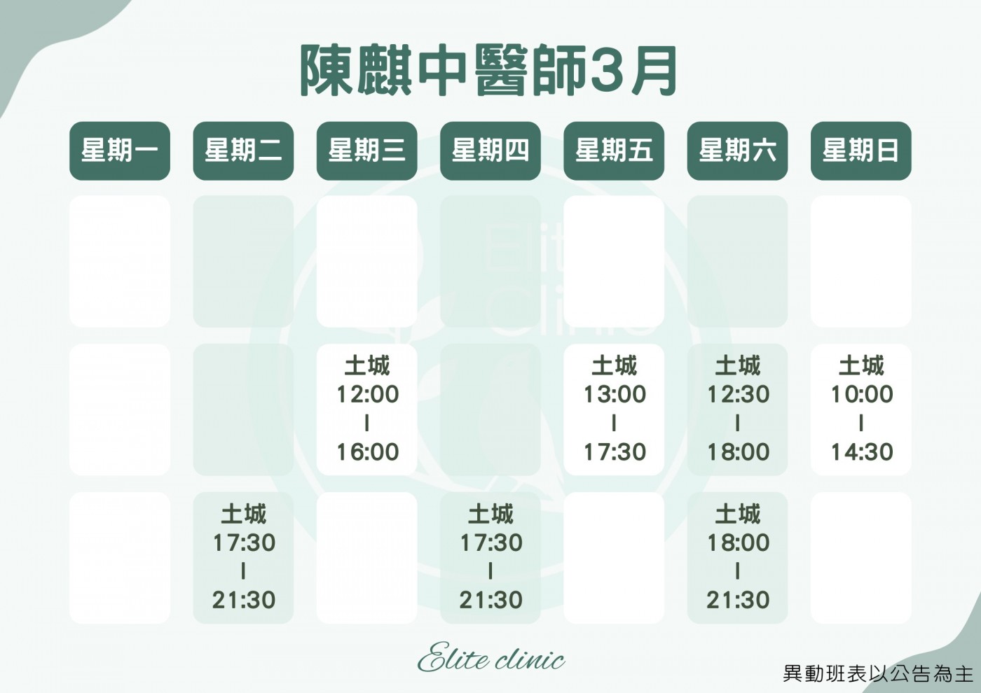 門診表