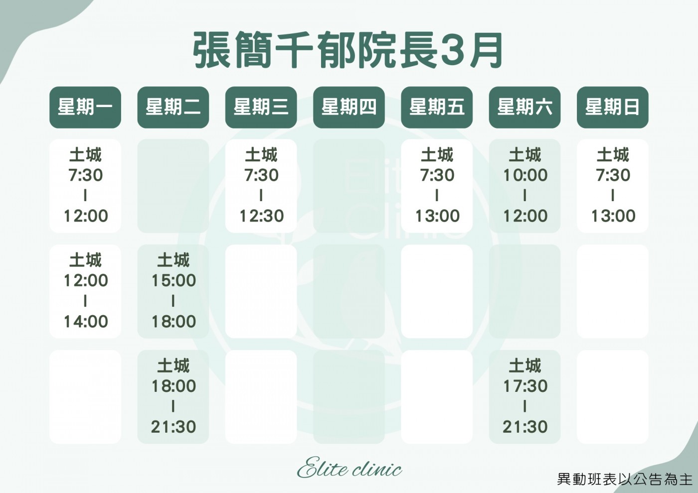 門診表