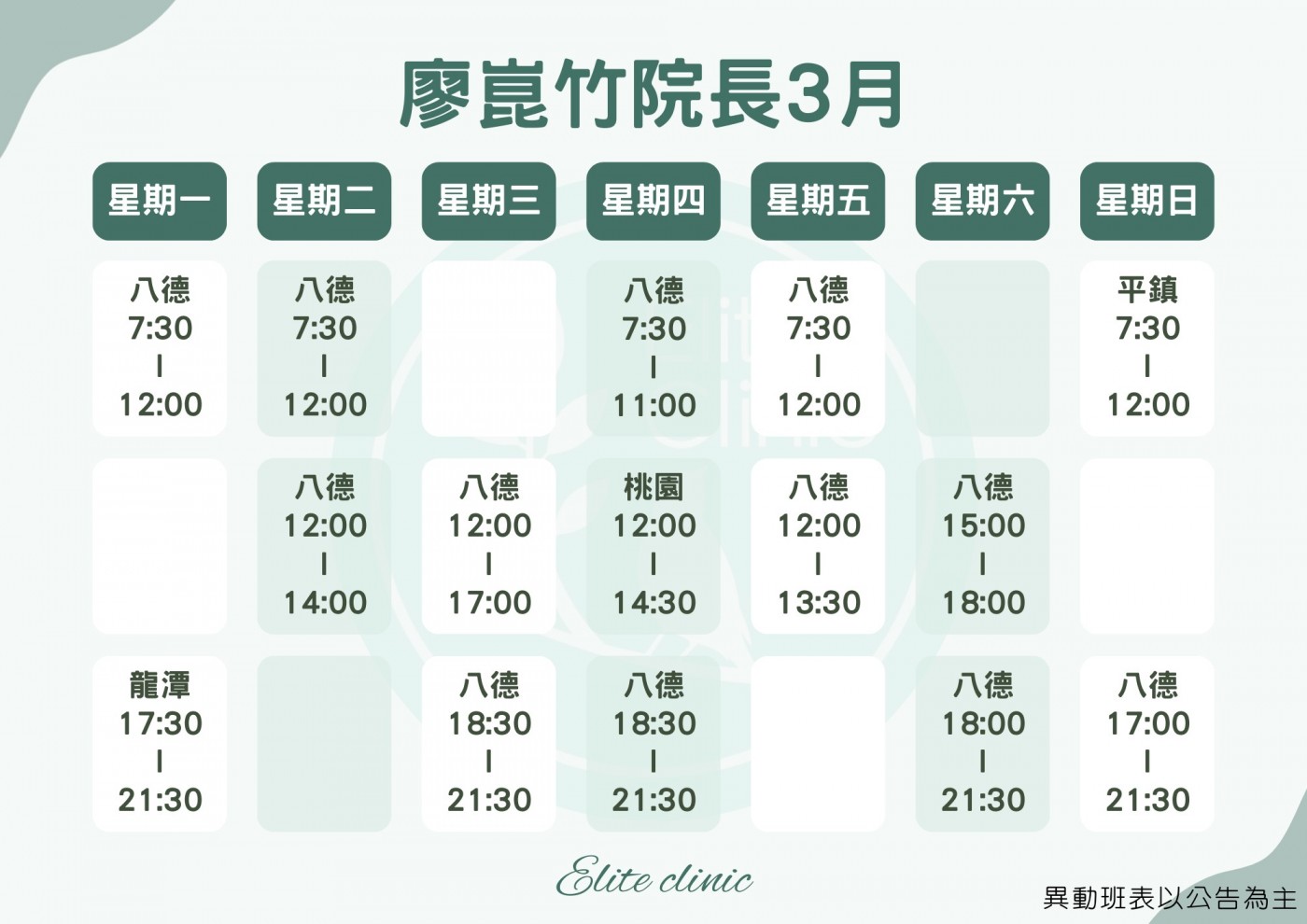 門診表