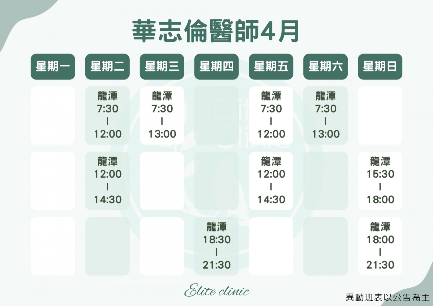 門診表