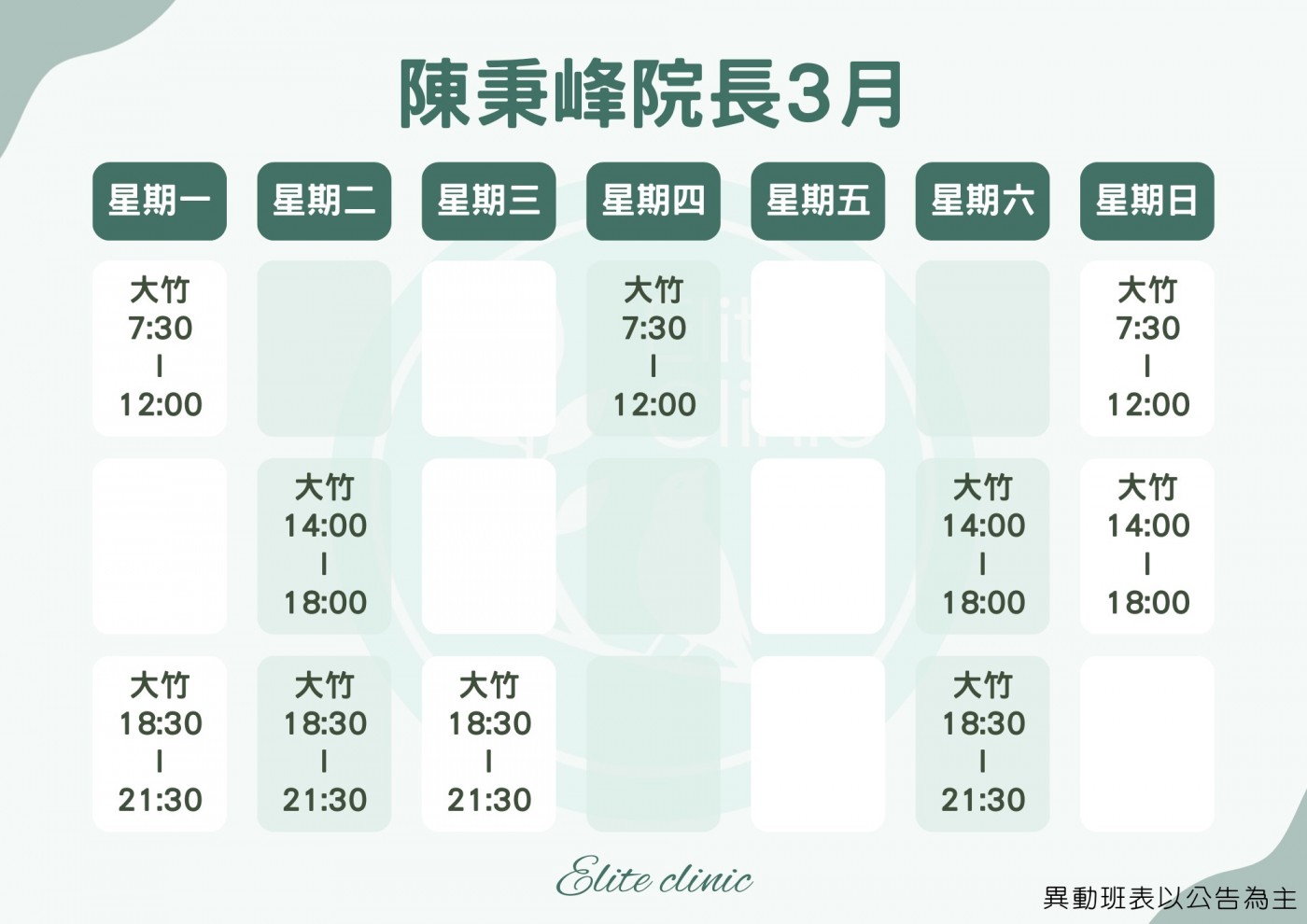 門診表