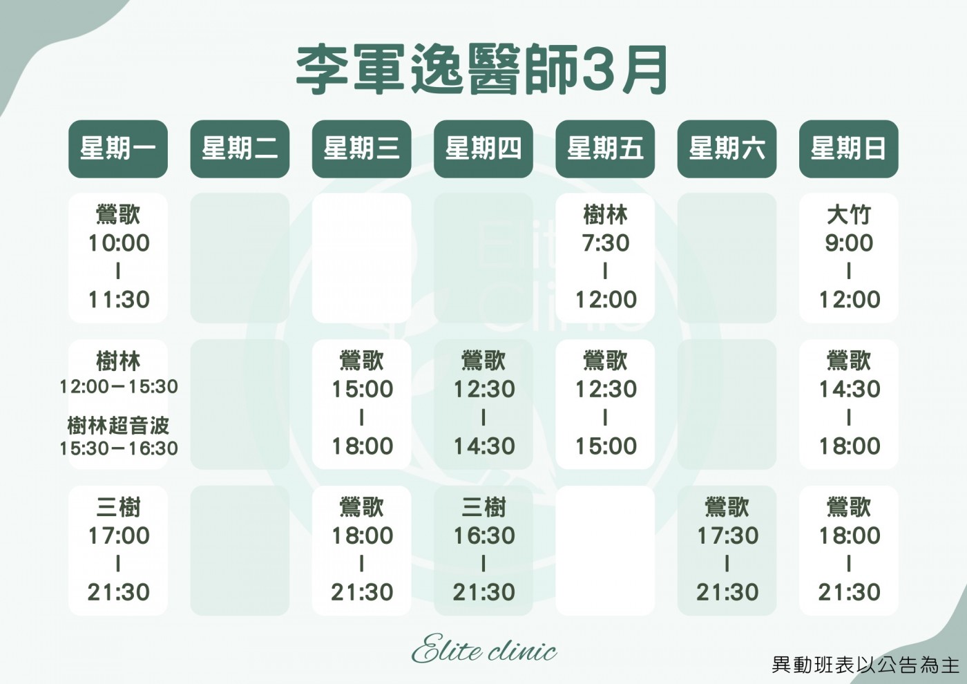 門診表