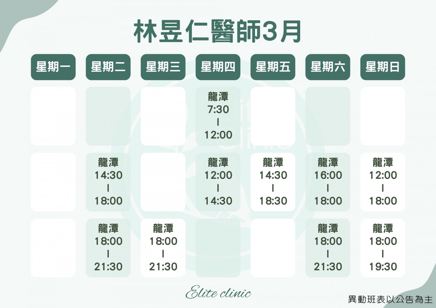 門診表