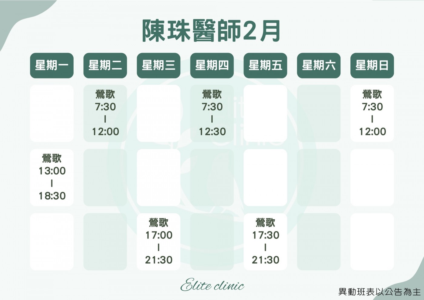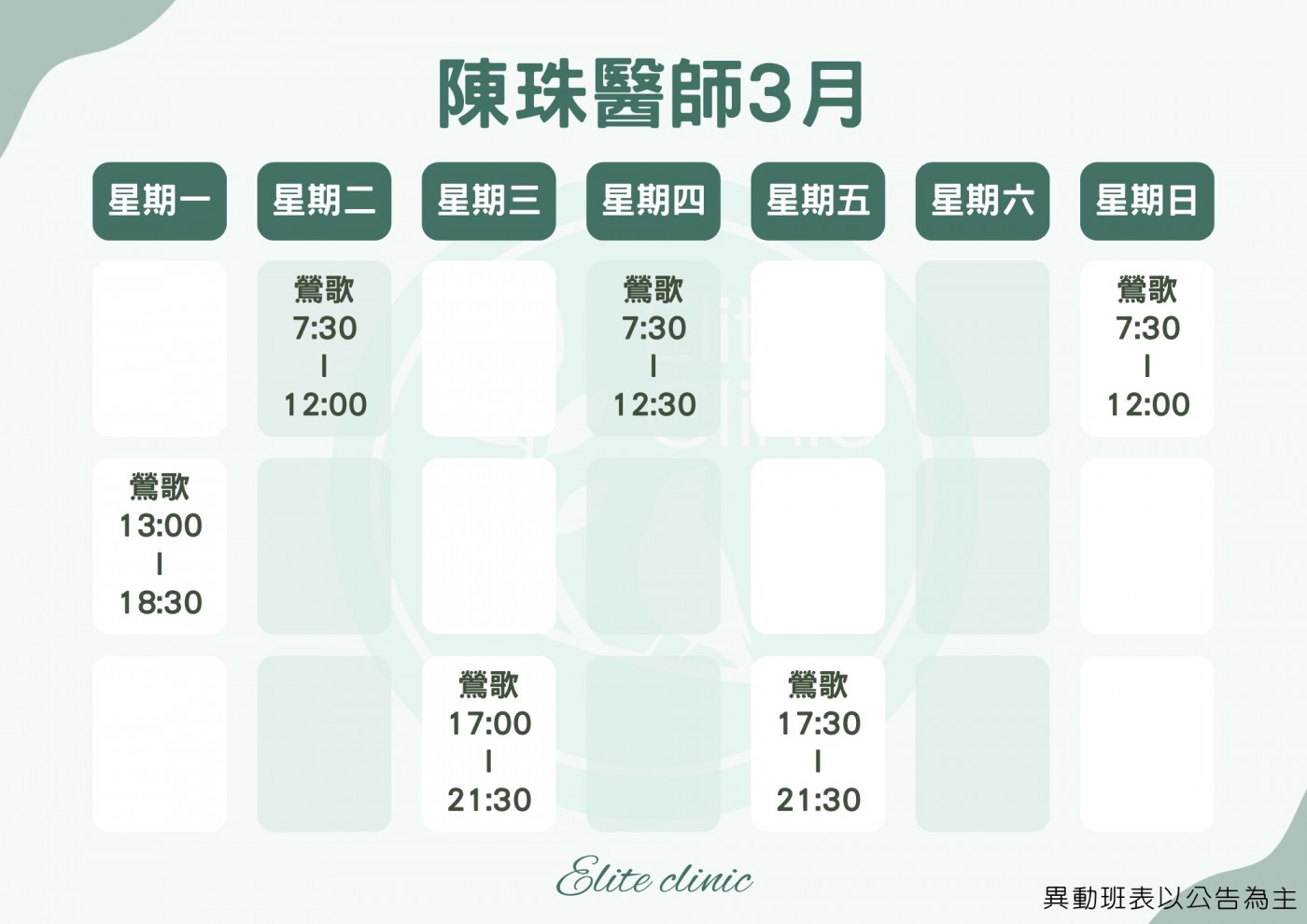 門診表